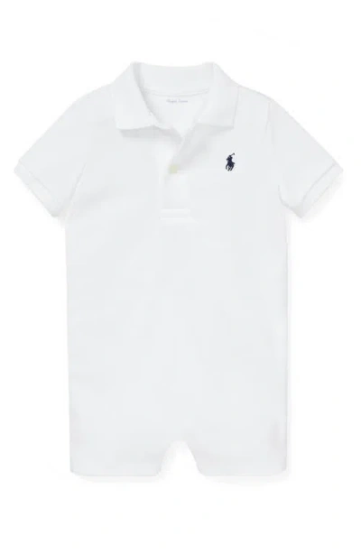 RALPH LAUREN Babies' Solid Cotton Interlock Polo Romper In White