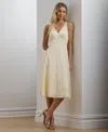 An Empire waist gives way to a flowy skirt on this light and lovely midi designed in a shimmering tonal jacquard for enchanting textural interest. 45" length (size 8) Hidden back-zip closure V-neck Sleeveless Lined 100% viscose Dry clean Imported