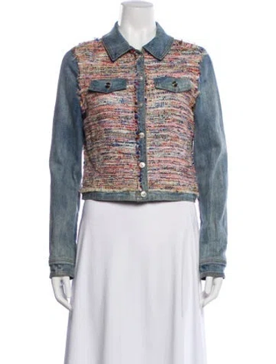 Pre-owned Tweed Pattern Denim Jacket In Blue