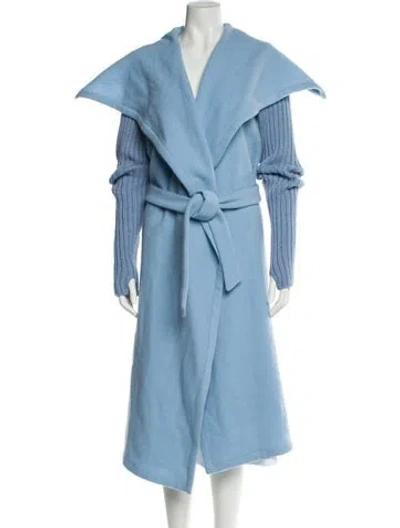 Ramy Brook Wool Coat Blue Shawl Collar Long Sash-Tie Closure Fit: Coats by Ramy Brook typically fit true to size. | Ramy Brook Wool Coat in Blue, Women's M
