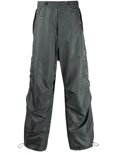 Grey waterproof technical trousers from Random Identities featuring a drawstring waist, side pockets, pleated details and a drawstring waist.