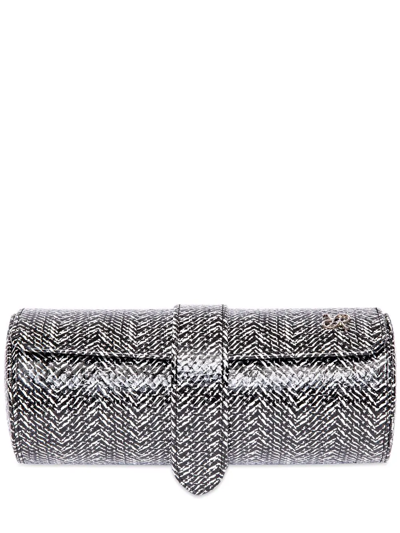 Three-watch roll features snakeskin effect herringbone pattern Made of leather with suede lining Holds three watches Item Weight (Lbs.): 1.7 Made in United Kingdom