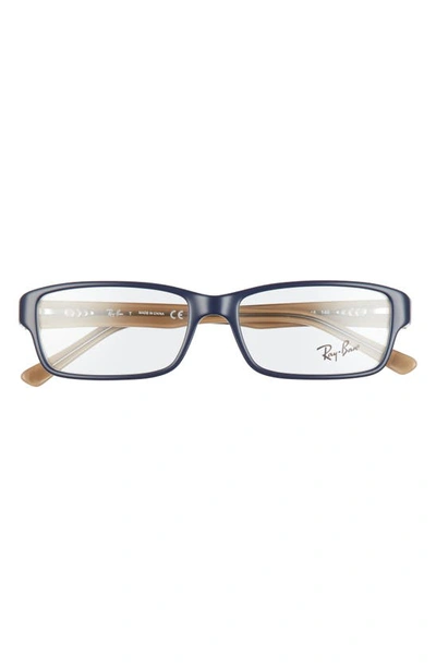 RAY BAN 54mm Rectangular Blue Light Blocking Glasses In Blue Brown/ Clear
