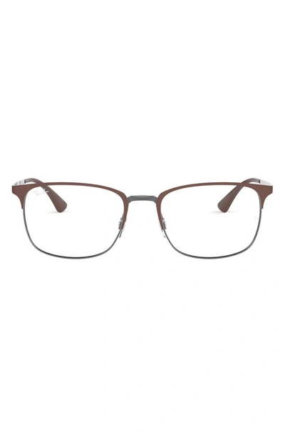 RAY BAN 54mm Rectangular Optical Glasses In Matte Brown