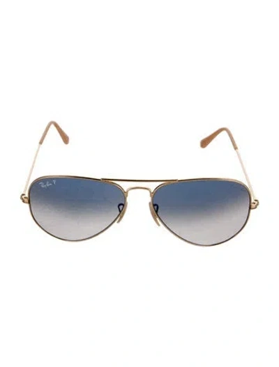 Ray-Ban Aviator Sunglasses Gold Tone Metal Polarized Gradient Lenses Includes Case | Ray-Ban Aviator Gradient Aviator Sunglasses in Blue/Gold