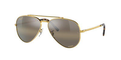Ray-Ban Unisex RB3625 NEW AVIATOR - Frame color: Legend Gold, Lens color: Polar Clear Gradient Dark Brown, Size 6214-