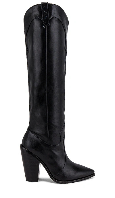 RAYE Inferno Boot in Black. Size 5.5, 6.5, 7, 7.5, 8, 8.5. Leather upper, lining and sole. Made in China. Side pull tabs. Approx 115mm/ 4.5 inch heelApprox 431mm/ 17 inch shaft. RAYE-WZ1988. RYSH487 F20. Inspired by the word Reina, the Spanish word for queen, Raye is the queen bee shoe brand that will surely capture your heart. With an extensive assortment of silhouettes from heels to boots and sandals to flats, Raye has that perfect something for everyone.