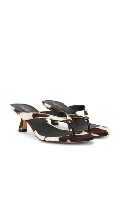 RAYE Kitty Sandal in Cream,Brown. - size 9.5 (also in 10, 5.5, 6, 6.5, 7, 7.5, 8, 8.5, 9) RAYE Kitty Sandal in Cream,Brown. - size 9.5 (also in 10, 5.5, 6, 6.5, 7, 7.5, 8, 8.5, 9) Dyed cow hair upper with leather sole. Fur origin: Brazil. Slip-on styling. Thong design. Rounded toe. Approx 57mm/ 2.25 inch heel. RAYE-WZ2902. RYSH10081 F25. Inspired by the word Reina, the Spanish word for queen, Raye is the queen bee shoe brand that will surely capture your heart. With an extensive assortment of silhouettes from heels to boots and sandals to flats, Raye has that perfect something for everyone.