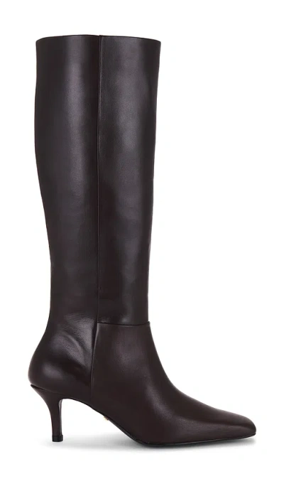 RAYE Shani Boot in Brown. Size 10, 5.5, 6, 6.5, 7, 7.5, 8.5, 9, 9.5. Leather upper with manmade sole. Made in Brazil. Partial side zipper closure. Leather footbed with textile lining. Square toe. Approx 65mm/ 2.5 inch heel Approx 381mm/ 15 inch shaft Shaft measures approx 13.34 in circumference. RAYE-WZ2783. RYSH1839 H24. Inspired by the word Reina, the Spanish word for queen, Raye is the queen bee shoe brand that will surely capture your heart. With an extensive assortment of silhouettes from heels to boots and sandals to flats, Raye has that perfect something for everyone.