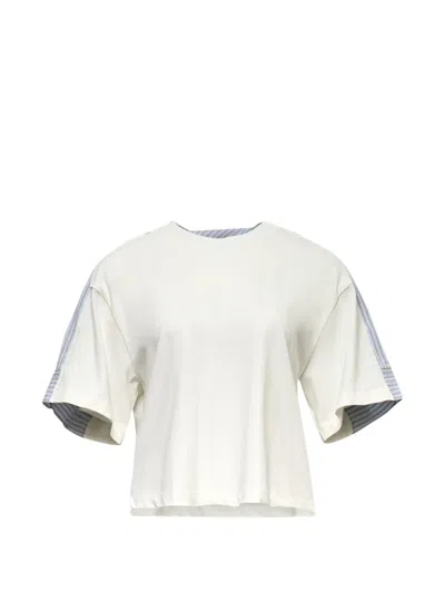 RE CODE Twisted Striped-back T-shirt In White