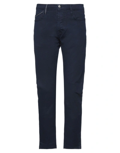 denim, leather applications, solid color, colored wash, mid rise, button closing, front closure, multipockets, contains non-textile parts of animal origin, stretch , Color: Midnight blue , Size: 30