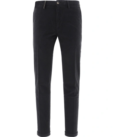 Re-Hash Mucha Chinos mens cotton blend pants, black colour, zip and logo button closure, side welt pockets, single welt pockets on back with button, turn-up hem, regular waist with belt loops, logo patch on retro, slim fit. Made in Italy. Composition: 55% Cotton, 42% Lyocell, 3% Elastan