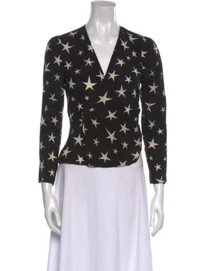 Réalisation Par Silk Blouse Black Printed Ruffle Embellishment Long Sleeve with V-Neck Sash-Tie Closure at Front Fit: Tops by Réalisation Par typically fit true to size. | Réalisation Par Silk Printed Blouse in Black, Women's XS