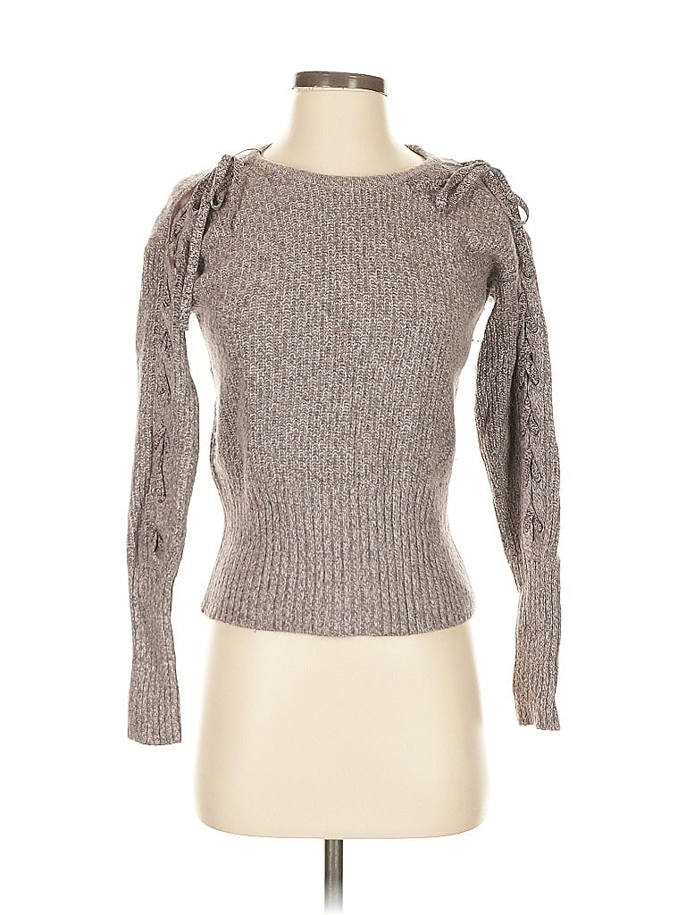Rebecca Minkoff Pullover Sweater, Size: X-Small. Item Details: Gray, Strapless Neckline, Long Sleeve, Lace Up, Women's Tops, Alpaca/Merino Wool/Nylon