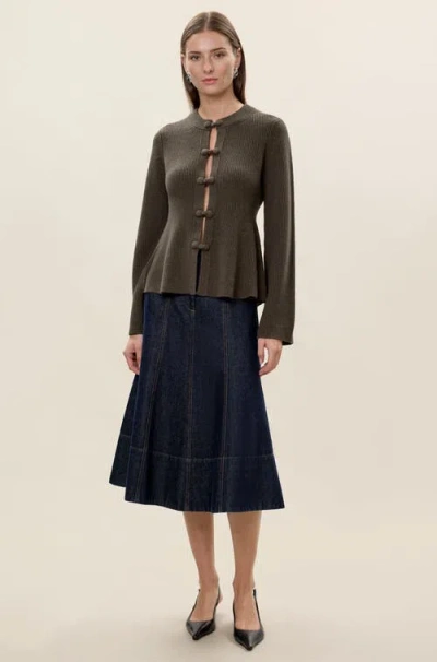 REBECCA TAYLOR Rhea Knit Peplum Cardigan In Olive In Brown