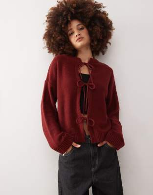 RECLAIMED VINTAGE Tie Front Cardigan In Burgundy-red