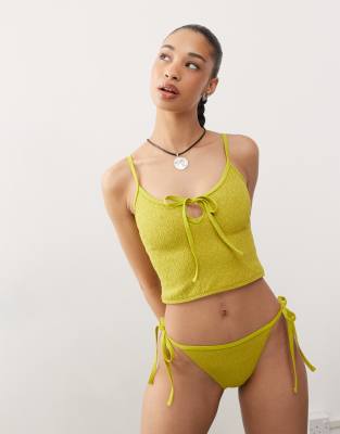 Swimwear & Beachwear by Reclaimed Vintage Exclusive to ASOS Low rise Adjustable tie sides High-cut leg Textured finish