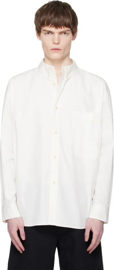 Brushed cotton twill shirt. · Button-down spread collar · Button closure · Patch pocket at chest · Shirttail hem · Dropped shoulders · Buttoned barrel cuffs · Box pleat at back yoke Supplier color: White