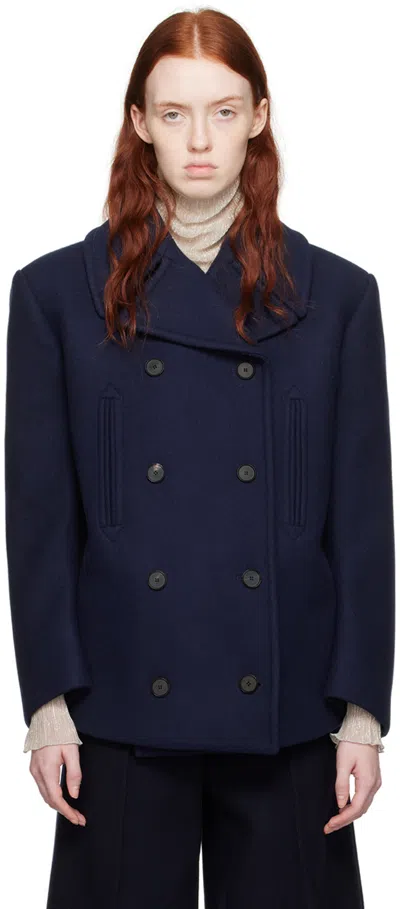 Wool-blend melton jacket. · Notched lapel · Double-breasted button closure · Welt pockets · Pinched seams at back · Full satin lining Supplier color: Navy