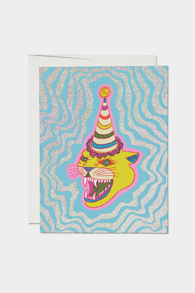 Red Cap Party Hat Cat Greeting Card At Urban Outfitters In Multicolor