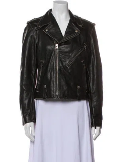 Pre-owned Leather Biker Jacket In Black