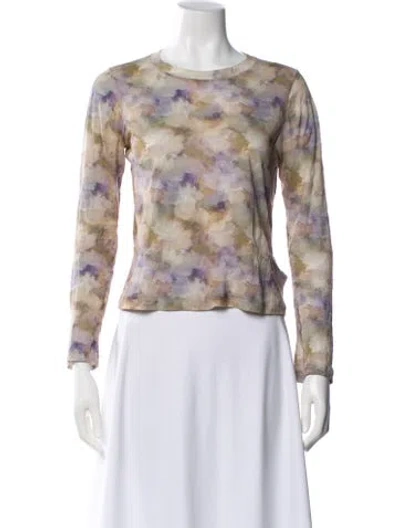 RE/DONE T-Shirt Grey Patterned Long Sleeve with Crew Neck Designer Fit: Tops by RE/DONE typically fit true to size. | RE/DONE Patterned Crew Neck T-Shirt in Grey, Women's M
