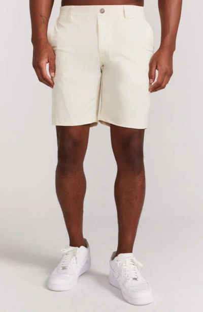 Focus on your game knowing that your pull-on golf shorts are cut from a specialized fabric designed for ultimate stretch and recovery. 8 1/2" inseam, 21" leg opening; 11" front rise; 15" back rise (size Medium) Zip fly with button closure; elastic waist Front slant pockets; back welt pockets 90% nylon, 10% spandex Machine wash, tumble dry Imported