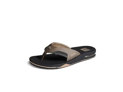 Reef Fanning - Men's Sandals : Fossil/Raven : Where will the weekend take you? Stay primed for beach outings and backyard chill sessions in the cushioned comfort of the Reef Fanning sandals! ; Flip-flops in a modern silhouette with plenty of cushioning for beach and casual wear. ; Synthetic nubuck upper feature a water-friendly design. ; Perforated and padded liner for breathable, soft comfort against the foot. ; Water-friendly construction can handle any water adventure. ; High-rebound molded EVA footbed offers support and comfort for those long days at the beach. ; Molded rubber midsole and outsole unit: • 360° airbag under the heel offers premium cushioning. • Bottle opener built into the outsole to open your beverage after a surf session or hanging out at the pool. • Logo tread for long-lasting, grippy wear. ; Imported. Measurements: ; Weight: 7 oz ; Product measurements were taken using size 7, width D - Medium. Please note that measurements may vary by size. | Reef Fanning Men's Sandals Fossil/Raven : 7 D - Medium, Synthetic