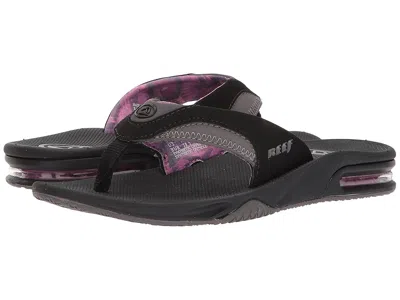 Reef Fanning W - Women's Sandals : Black/Grey 2 : Reef sandals will always set the beach ablaze, especially with the beachside sheen of the Fanning W! ; Water friendly synthetic nubuck upper. ; Contoured CMEVA footbed. ; Full 360 degree heel airbag enclosed in soft polyurethane. ; Church key to open your soda bottle. ; Reef icon herringbone rubber outsole. ; Mick's signature sandal. ; Imported. Measurements: ; Weight: 7 oz ; Product measurements were taken using size 7, width B - Medium. Please note that measurements may vary by size. | Reef Fanning W Women's Sandals Black/Grey 2 : 10 B - Medium, Synthetic