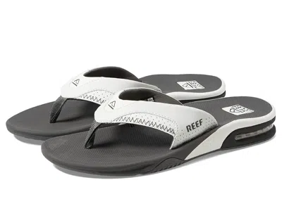 Reef Fanning - Men's Sandals : Grey/White : Where will the weekend take you? Stay primed for beach outings and backyard chill sessions in the cushioned comfort of the Reef Fanning sandals! ; Flip-flops in a modern silhouette with plenty of cushioning for beach and casual wear. ; Synthetic nubuck upper feature a water-friendly design. ; Perforated and padded liner for breathable, soft comfort against the foot. ; Water-friendly construction can handle any water adventure. ; High-rebound molded EVA footbed offers support and comfort for those long days at the beach. ; Molded rubber midsole and outsole unit: • 360° airbag under the heel offers premium cushioning. • Bottle opener built into the outsole to open your beverage after a surf session or hanging out at the pool. • Logo tread for long-lasting, grippy wear. ; Imported. Measurements: ; Weight: 7 oz ; Product measurements were taken using size 7, width D - Medium. Please note that measurements may vary by size. | Reef Fanning Men's Sandals Grey/White : 6 D - Medium, Synthetic