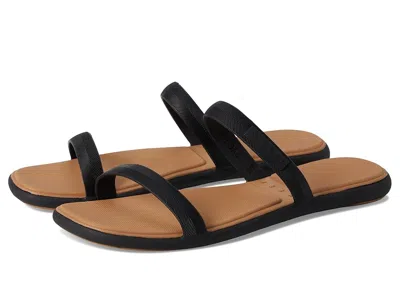 Reef Water Willow Marina - Women's Sandals : Black/Tan : Make waves in effortless style! Slip into the Reef Water Willow Marina, a water-friendly essential designed for all-day comfort. The soft, flexible TPU upper with a chic chevron texture hugs your foot, while the lightweight EVA footbed delivers a super squishy feel with every step. Its sleek square-toe silhouette adds a modern touch, making it perfect for beach strolls or poolside lounging. The textured EVA outsole ensures steady traction, wet or dry, so you can move with confidence. Slip on, soak up the sun, and embrace endless vibes in the perfect blend of style and comfort! ; Imported. | Reef Water Willow Marina Women's Sandals Black/Tan : 5 B - Medium, Synthetic