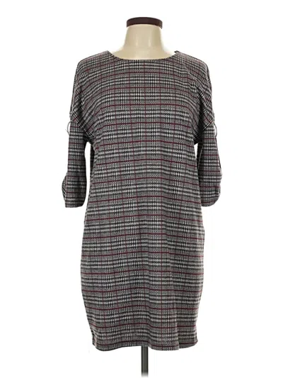 Reference Point Casual Dress, Size: Large. Item Details: Gray, Tweed Pattern, Shift, Crew Neck, Short Length, 3/4 Sleeve, Flannel, Women's Dresses, Polyester/Spandex