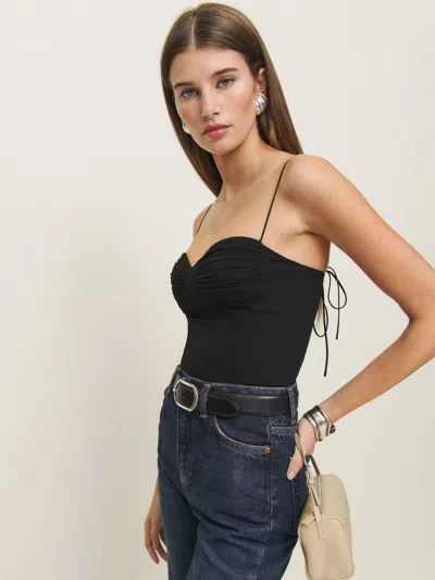 Shop the Pixie Top from Reformation, a spaghetti strap top with a sweetheart neckline and ruched detailing at the bust.