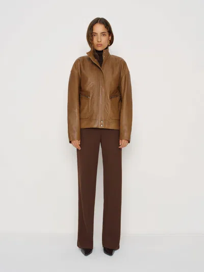 REFORMATION Veda Harrison Leather Oversized Bomber In Brown