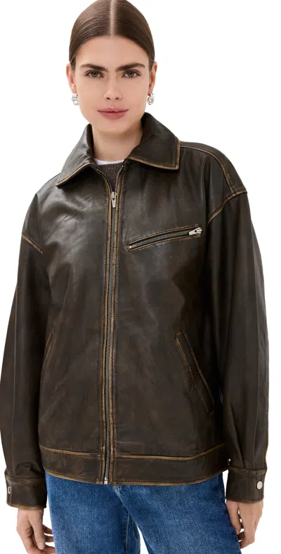 REFORMATION Veda Marco Leather Oversized Bomber Pitstop In Pit Stop