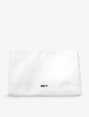 The brainchild of influencer and model Jess Hunt, REFY is dedicated to embracing natural beauty through product innovation and tried-and-tested formulas. Following the global fanfare for the label's easy-to-use essentials, the brand spins the Signature Bag to stash your treasured tools. Crafted from bespoke, patent cotton canvas that wipes clean any troublesome make-up stains and mishaps, its sloughy silhouette is shaped with one main compartment and stitched with an internal zipped pocket.Refy Signature cotton-canvas beauty bag100% cotton canvasPopper fasteningSlouchy silhouette, one main compartment, internal zipped pocket, silver-toned hardware, logo print, fully linedWidth 29cm, height 17cm, depth 14cmWipe with a clean, dry cloth