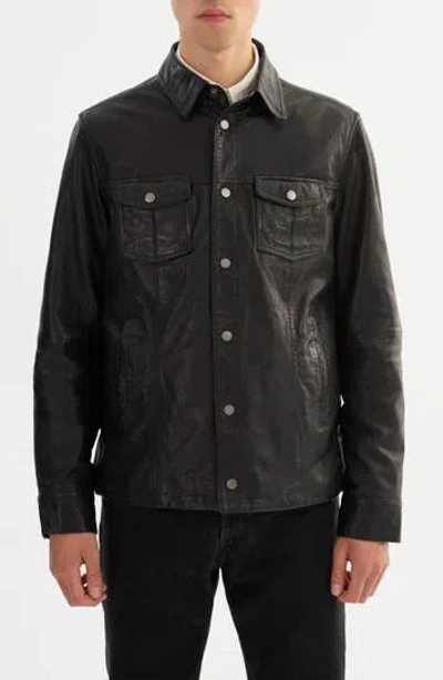 Show off timelessly cool style in this heavyweight leather jacket boasting an easy snap closure and convenient pockets. 27" length Front snap closure Spread collar Chest snap-flap patch pockets; front welt pockets Lined Leather Professional leather clean Imported