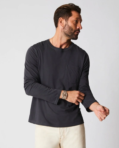 Our lightweight, long-sleeve pocket tee is made from ultra-soft Pima cotton and garment-dyed for a lived-in look and feel. Finished with subtle stitching at the chest pocket, inspired by our signature ribbon stripe.. ---. 100% Pima Cotton. Made in Peru. Machine wash cold. Model is 6'1" wearing size M. . FIT. Standard fit. Relaxed through the chest, body and sleeves. .