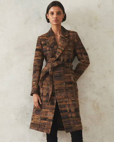 This smartly tailored outerwear piece features a hidden interior self-belt, offering a distinctive, clean silhouette. Crafted in Portugal, and finished with luxe details like a leather locker loop and single welt pockets at the hips.. ---. Body: 59% Cotton, 32% Polyester, 8% other fibers, 1% Wool; Sleeve Lining: 55% Viscose, 45% Acetate. Made in Portugal. Dry clean only. Model is 5'11" wearing size S. . FIT. Slim, straight fit through the chest, body and sleeves. .
