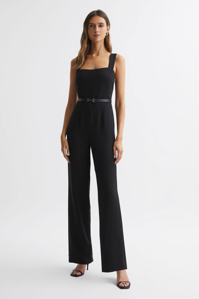Good American, curated by Reiss, is a collection designed to work perfectly with your existing Reiss wardrobe. Innovative, solution-led denim and lifestyle garments champion inclusivity, enhance curves and represent body acceptance. By women, for women. Sophisticated and seductive in equal measure, the Executive jumpsuit is the perfect pick for your evening events. It's fitted with thick shoulder straps and a square neckline to support and showcase your best assets. The bodice is fitted for a sleek, tailored appearance. Streamline the look further by pairing with heels and minimal jewellery. Thick shoulder straps Square neckline Zip closure to reverse Tailored fit Wide leg The model is wearing a size 8 Measurements of model: Height 5ft 10 / 178cm