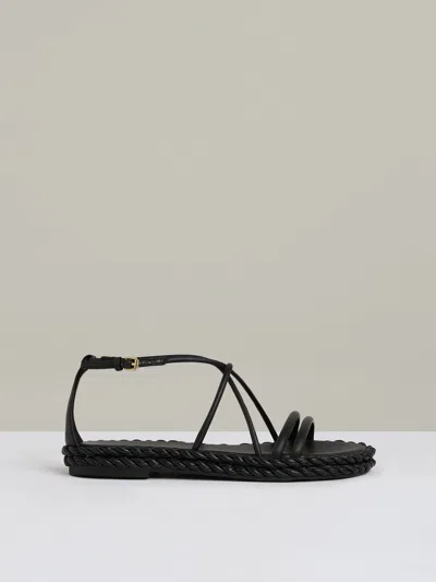 REISS Black Leather Braided Flat Sandals