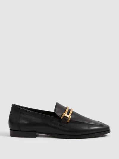 The Angela loafers are a round-toe shape crafted from leather and fitted with a sleek leather insole. Gold-tone hardware decorates the front of the shoe. Gold-tone hardware Leather construction Leather insole Rounded toe