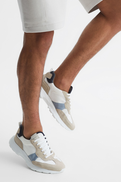 REISS Evo Colour-blocked Suede And Mesh Low-top Trainers In White