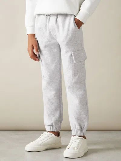 REISS Grey Melange Arzin 3-9 Yrs Textured Cotton Blend Drawstring Joggers In White