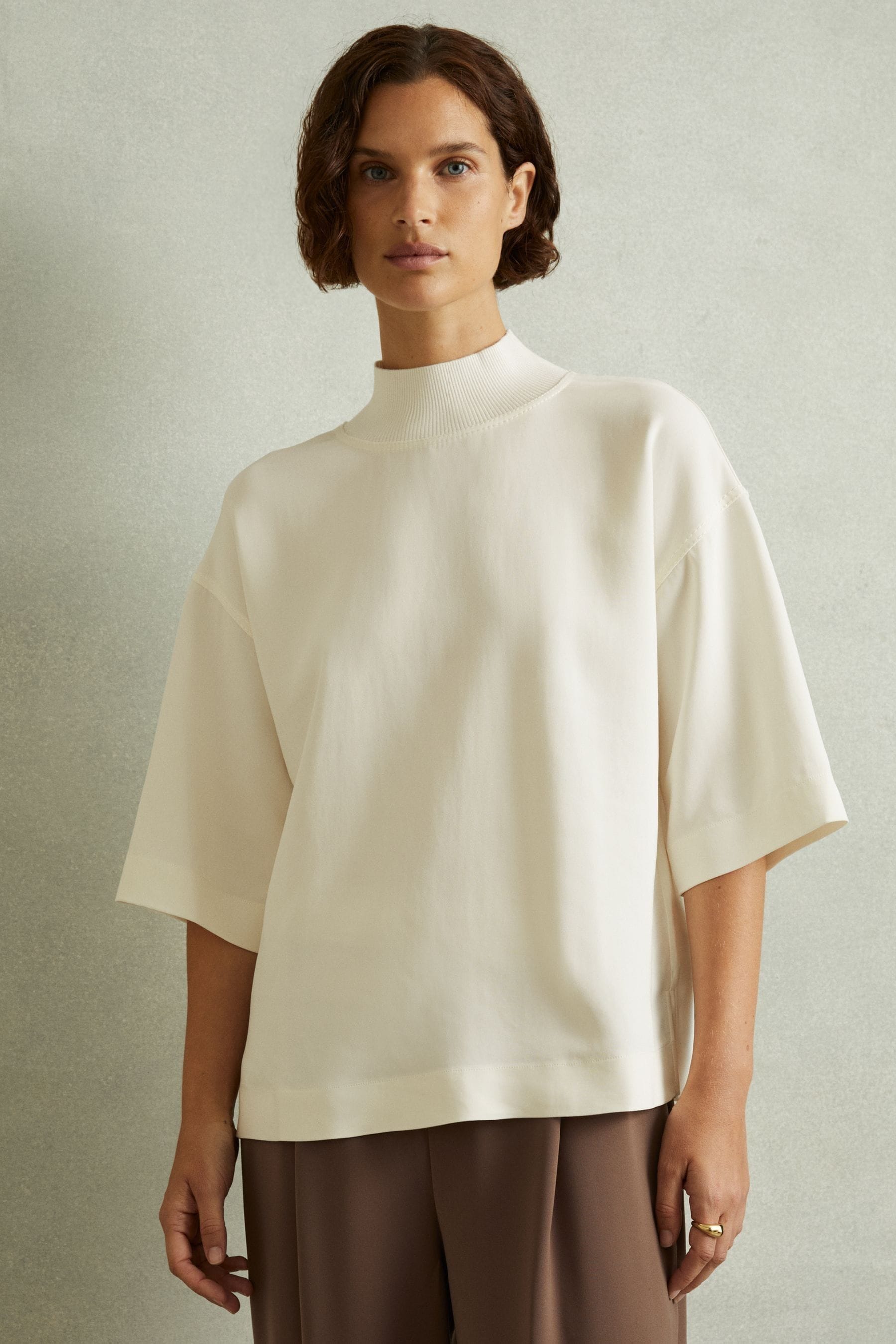 REISS Ivory Amaya Oversized Rib-neck T-shirt