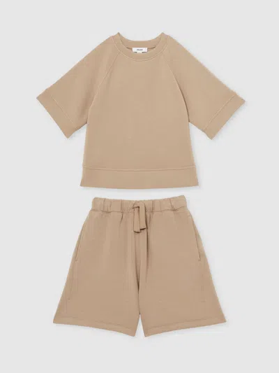 REISS Kids' Mink Selena 13-14 Yrs Modal-blend Sweatshirt And Shorts Set In Brown