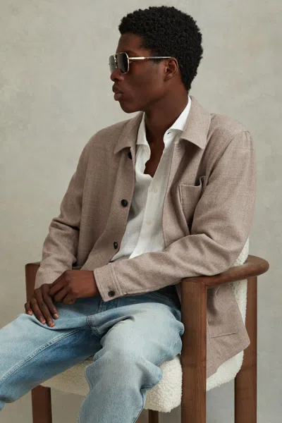 REISS Mocha Cart Wool Blend Button-through Overshirt