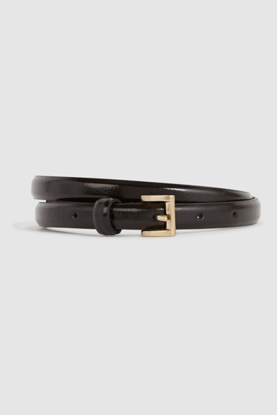 Featuring an all-over crocodile-effect pattern that s somewhat exotic, the Molly leather belt in black is a versatile piece that will elevate any outfit. Wear it with denim and boots for a contemporary overall look. Crocodile-effect pattern. Gold-tone fastening. Belt width: 2cm. The model is wearing a size S