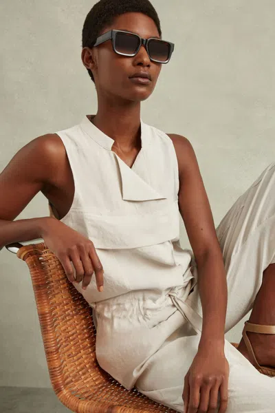 REISS Stone Belted Utility Jumpsuit