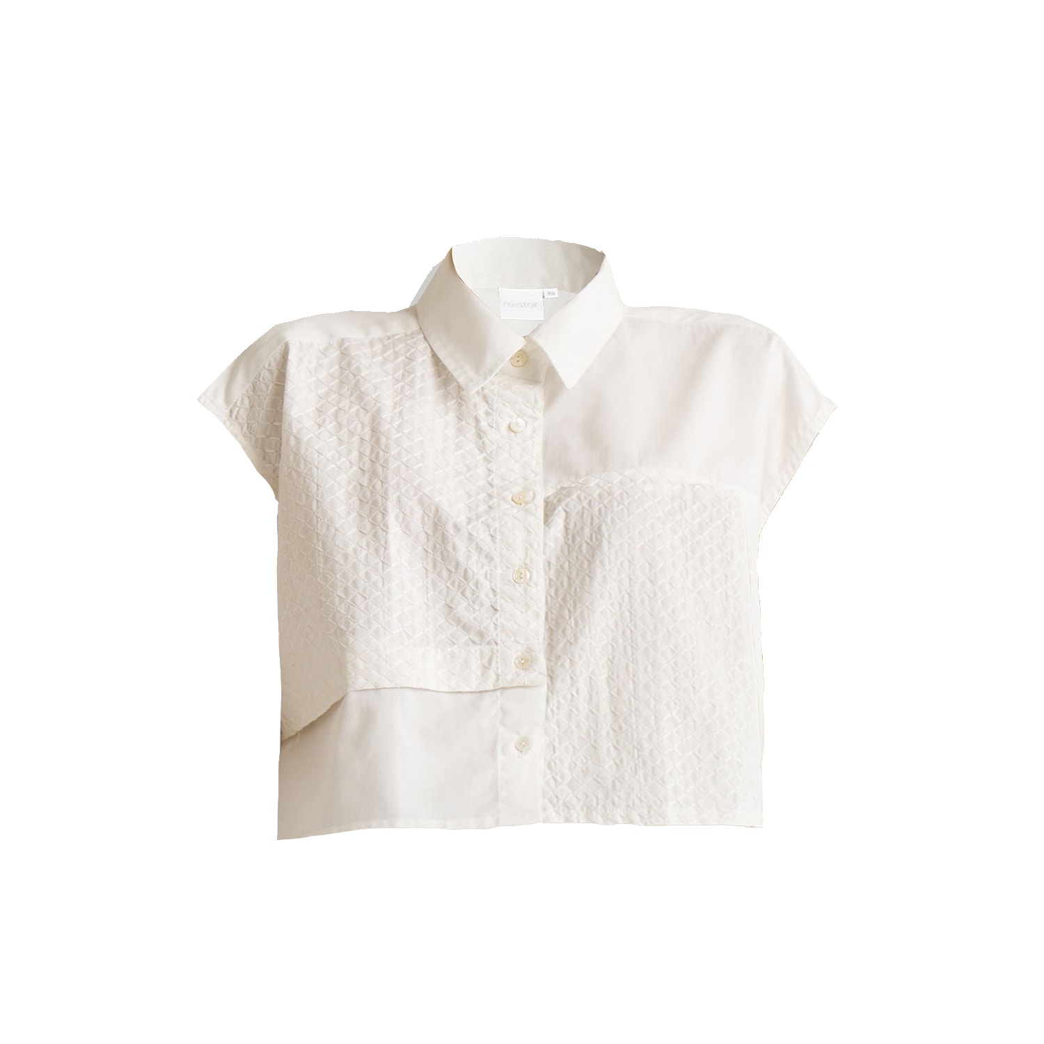 REISTOR Embroidered Panel Crop Top In White In Multi